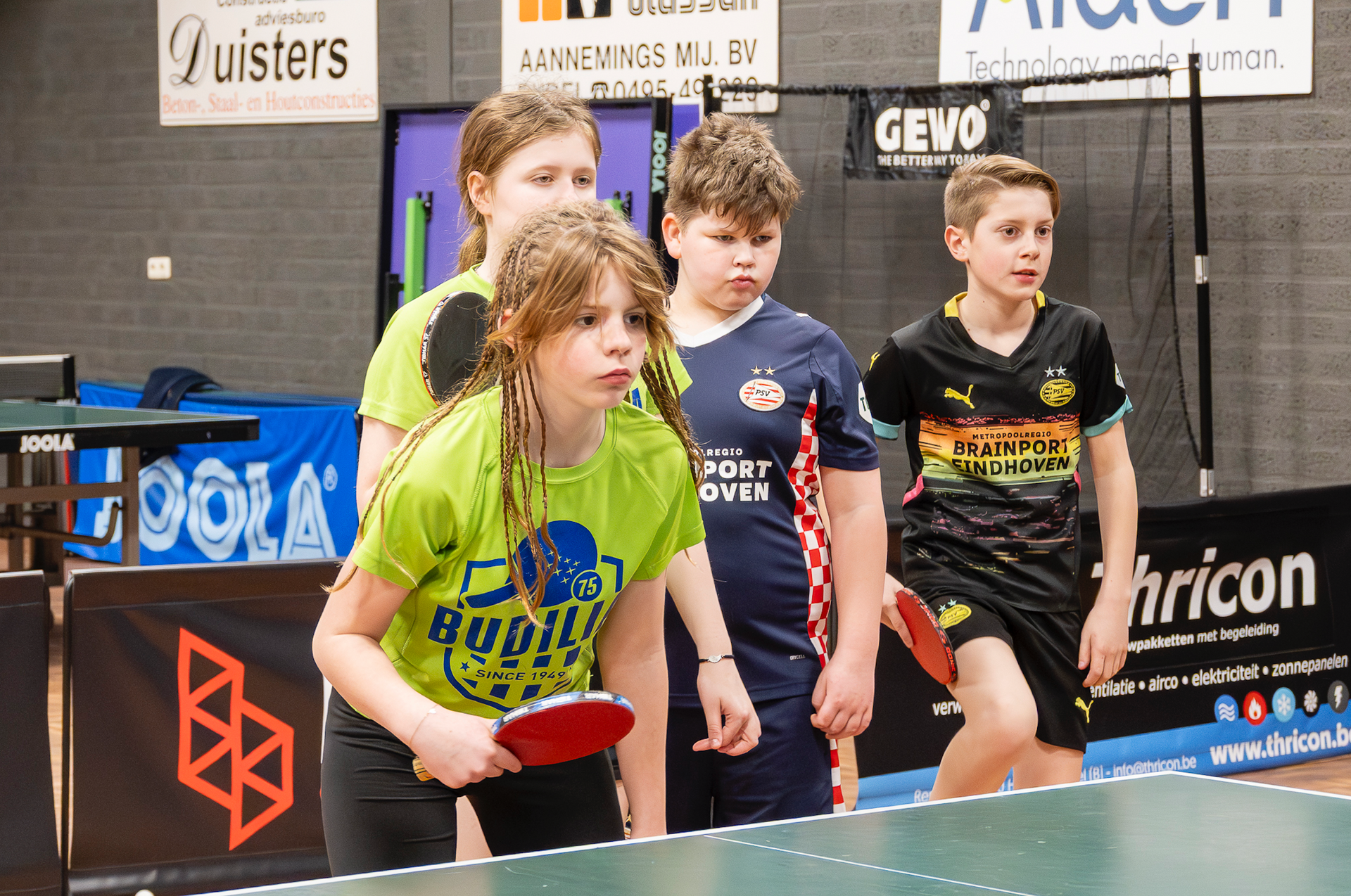 Je kunt al op jonge leeftijd (vanaf groep 3) komen tafeltennissen. Door middel van leuke spelletjes en eenvoudige oefeningen leer je al snel een balletje te slaan.